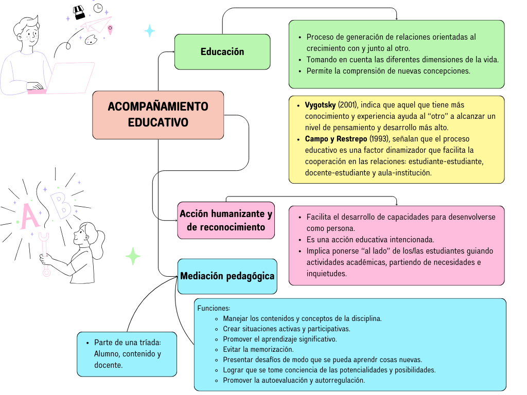 Para esta actividad, los/las estudiantes que investigan los siguientes aspectos relacionados con el acompañamiento educativo: